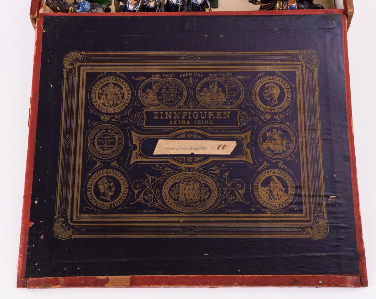 Konvolut frühe Bleifiguren / Zinnfiguren in Originalkasten. R. Schumann, Dresden.