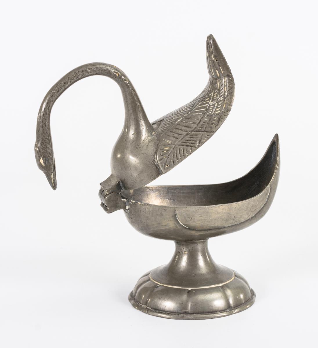2 Walzenkrüge, Helmkanne und Schwanendose Zinn.