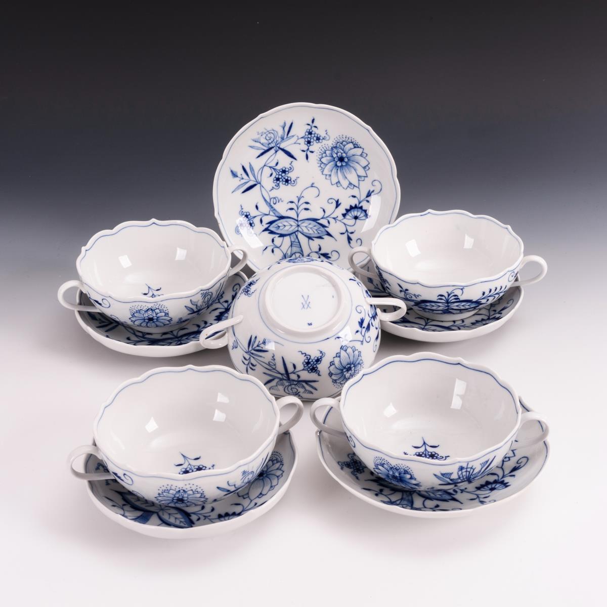 5 Zwiebelmuster-Suppentassen. Meissen.