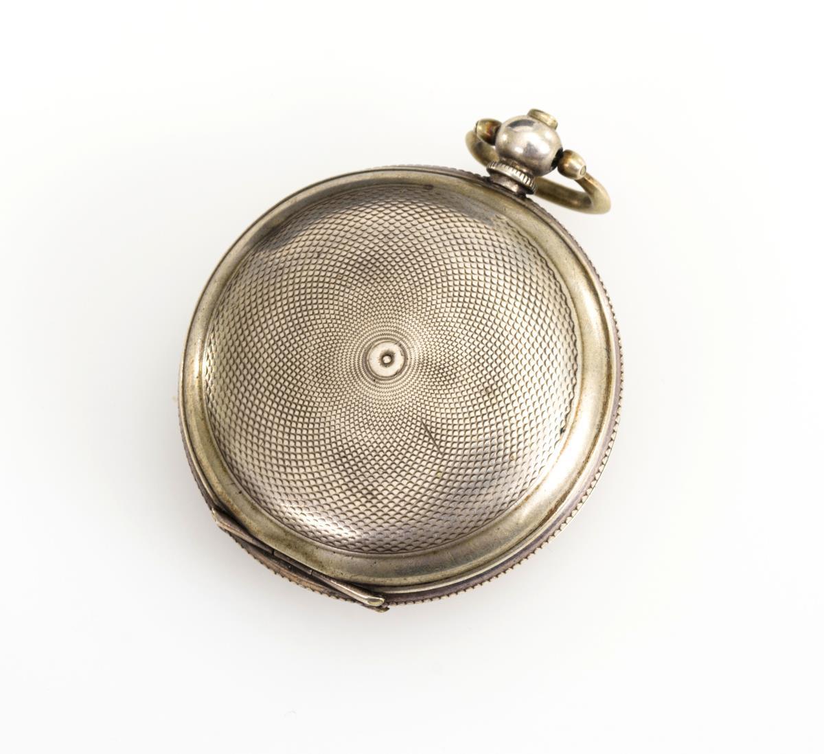 Guillochiertes Sprungdeckelgehäuse mit leerer Wappenkartusche. Läuft nicht. Alters- und Gebrauchsspuren, Gehäuse schließt nicht, Defekte an Zifferblatt und Gehäuse.