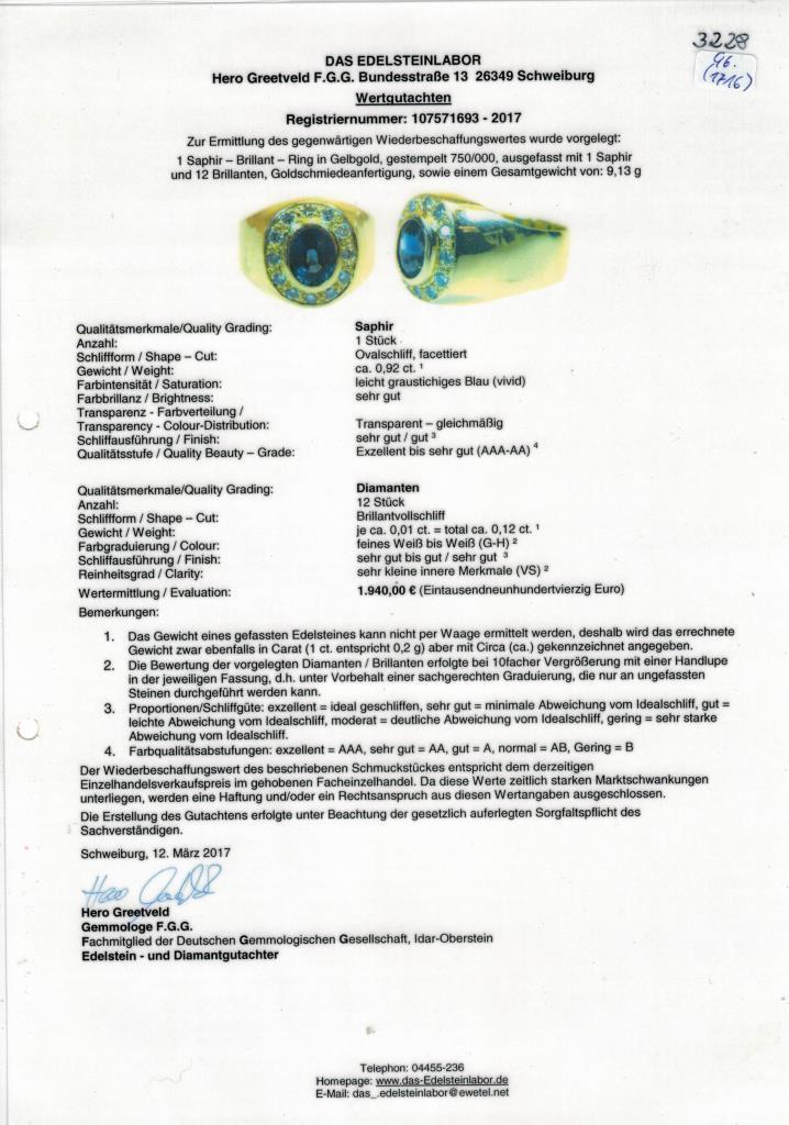 750 GG.Rg 54, Saphir ca. 0,92 ct, Brillanten zus. ca. 0,12 ct/G-H/vs.9,1 g.