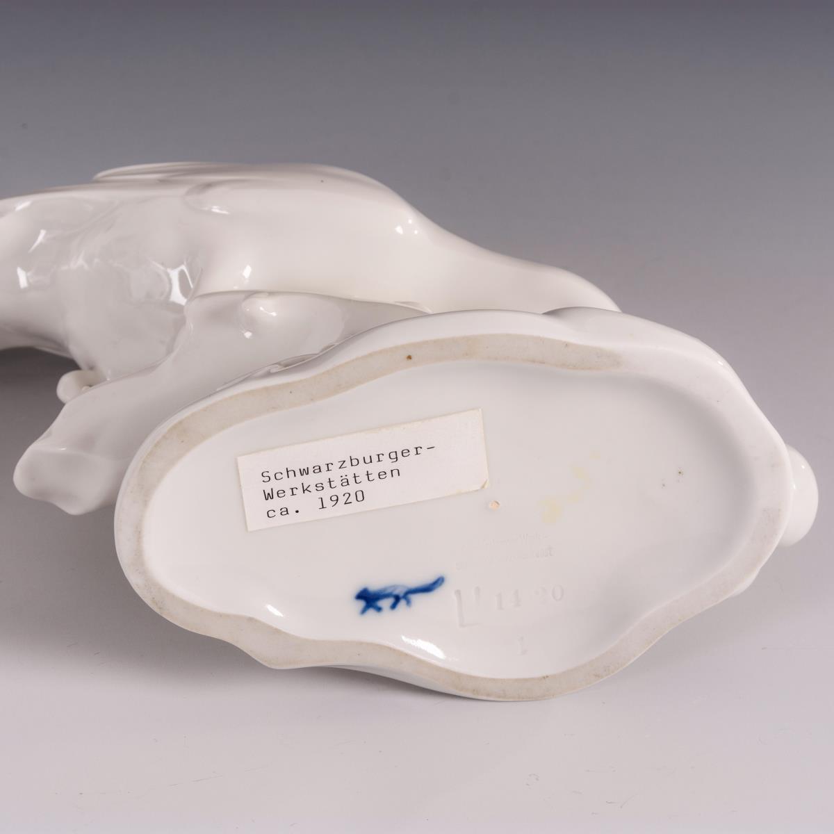 Prägemarke und Blaumarke Schnürender Fuchs, ab 1926. Bezeichnet. Modell-Nr.: 1420. NEUHÄUSER, Wilhelm(1885-1960)