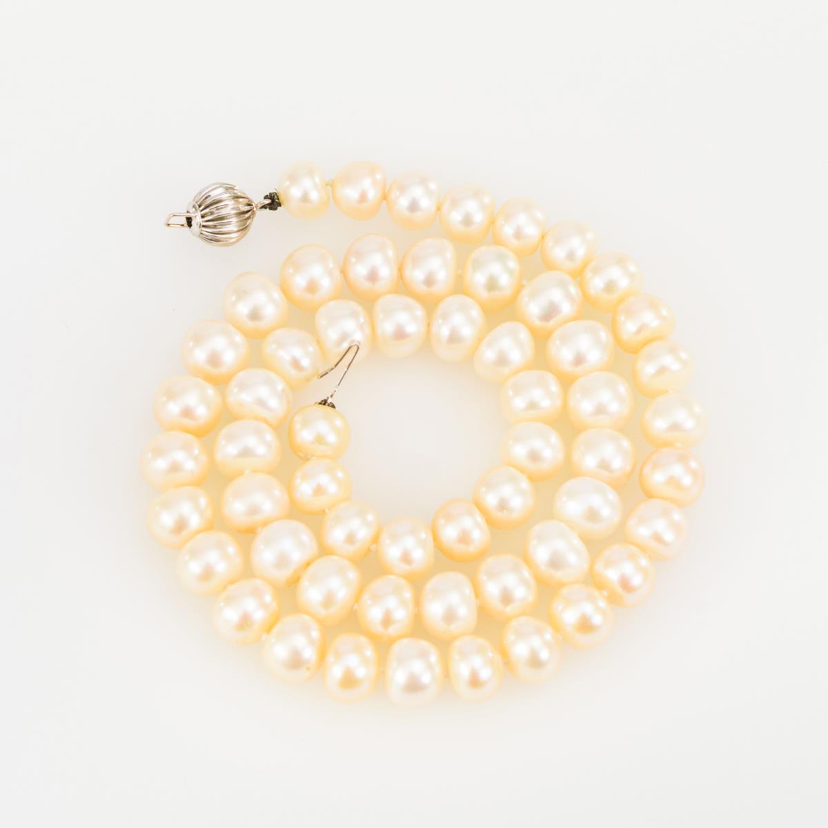 Weißgold 14 k gestempelt. L 44 cm. Perlen Ø 7 mm. 40,2 g.