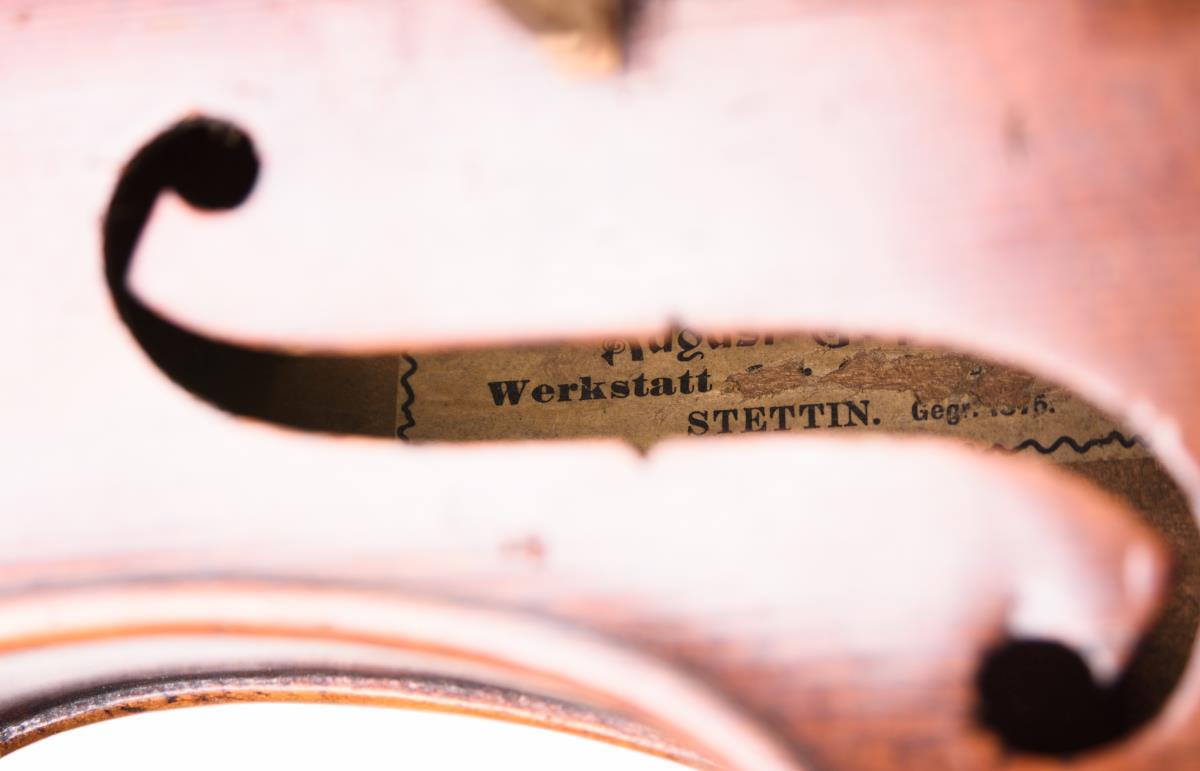 4/4-Meistergeige im Kasten mit Bogen "BAUSCH". August Geipel, Stettin.