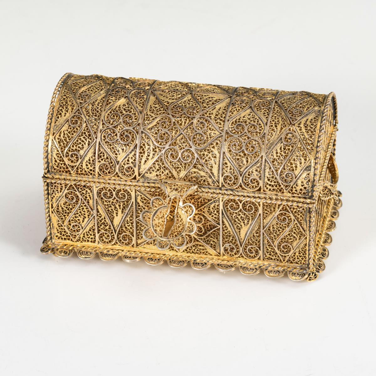 Vergoldete Silberfiligran-Schatulle.