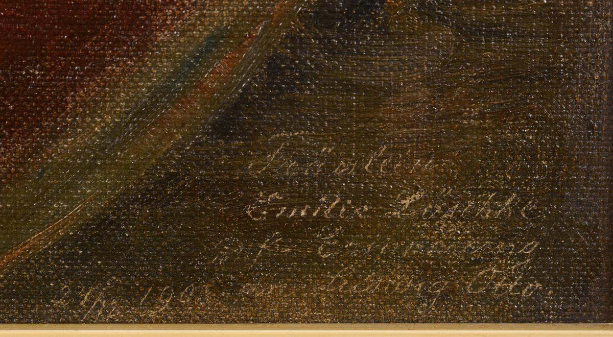 Öl/Leinwand. Rechts unten signiert mit Zusatz "Fräulein Emilie Löschke zur Erinnerung". Datiert: 1903.