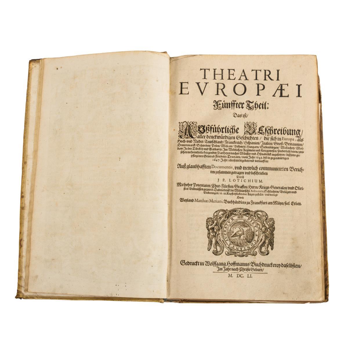 "Außführliche Beschreibung aller denckwürdigen Geschichten die sich in Europa, als Hoch- und Nieder-Teutschland, Franckreich, Hispanien, Italien, Groß-Britannien, Dennemarck, Schweden, Polen, Moscaw, Böhmen, Hungarn, Siebenbürgen, Wallachey, Moldaw: In der Türckey und Barbarey: Im weltlichen Regiment von Kriegswesen, sonderlich denen zwischen mehrentheils kriegenden Partheyen nachher Münster und Osnabrück angesetzten bißhero gepflogenen General-Friedens-Tractaten vom Jahr 1643 bis in Gegenwärtiges 1647 Jahr". Zusammengetragen und Beschrieben durch J.P. Lotichium.