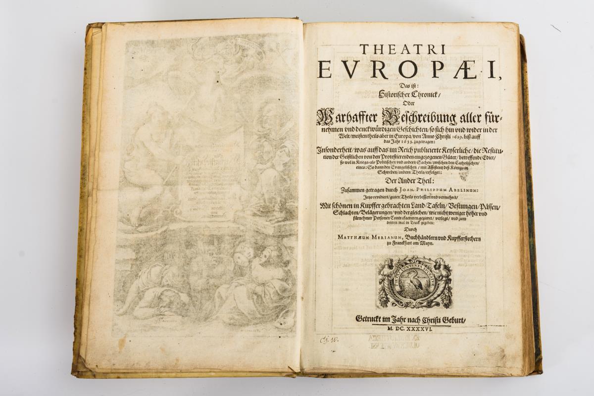 "Wahrhaffter beschreibung aller fürnehmen und denckwürdigen Geschichten so sich hin und wider in der Welt meistentheils aber in Europa von Anno Christi 1629 bis auf das Jahr 1633 zugetragen: Insonderheit was auf das im Reich publicierte Keyserliche die Restitution der Geistlichen von den Protestierenden eingezogenen Güter betreffende Edict ...". Zusammengetragen von Joan. Phillippum Abelinum.