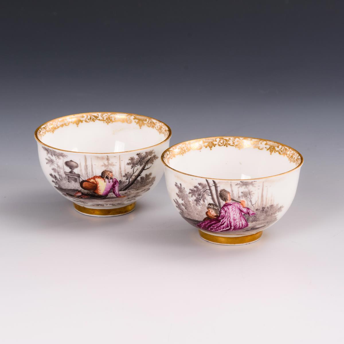 2 barocke Koppchen mit Watteaumalerei. Meissen.