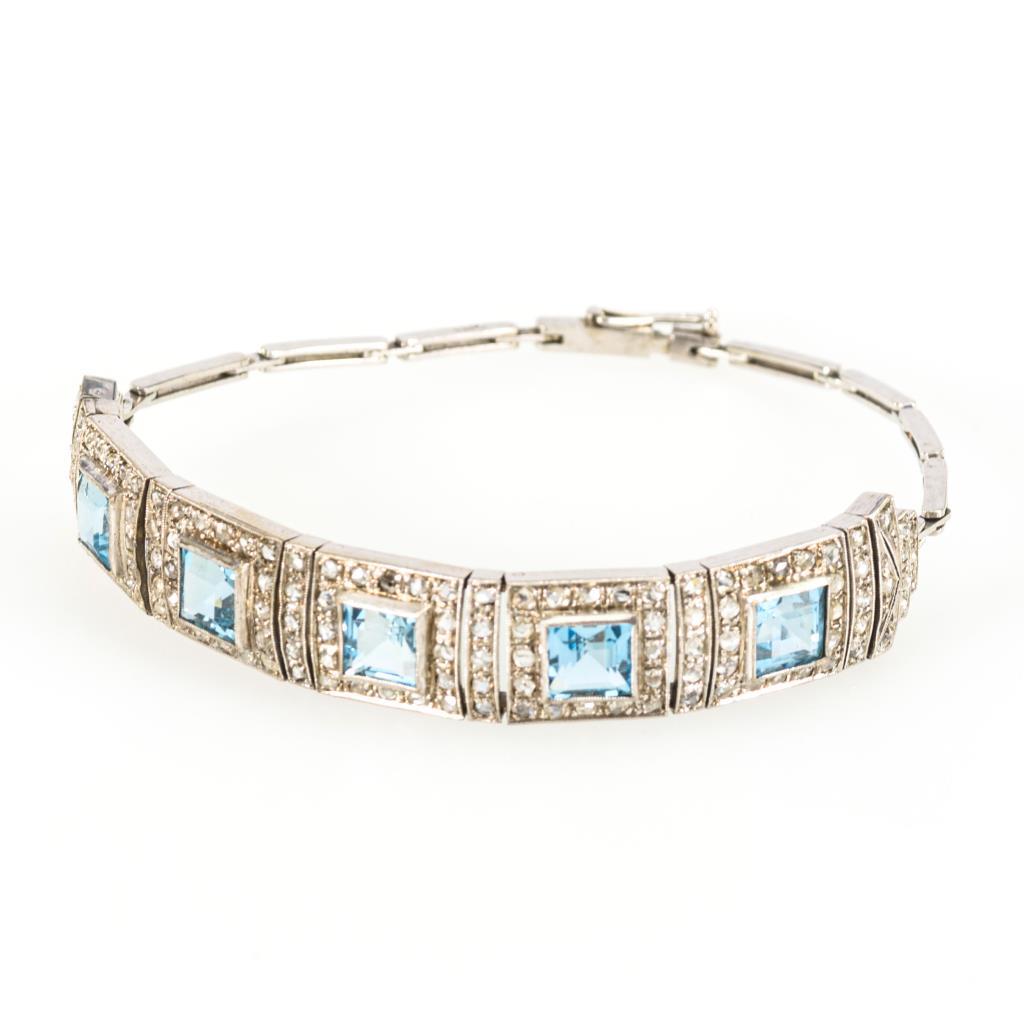Art-Déco-Armband mit Aquamarinen und Diamantrosen