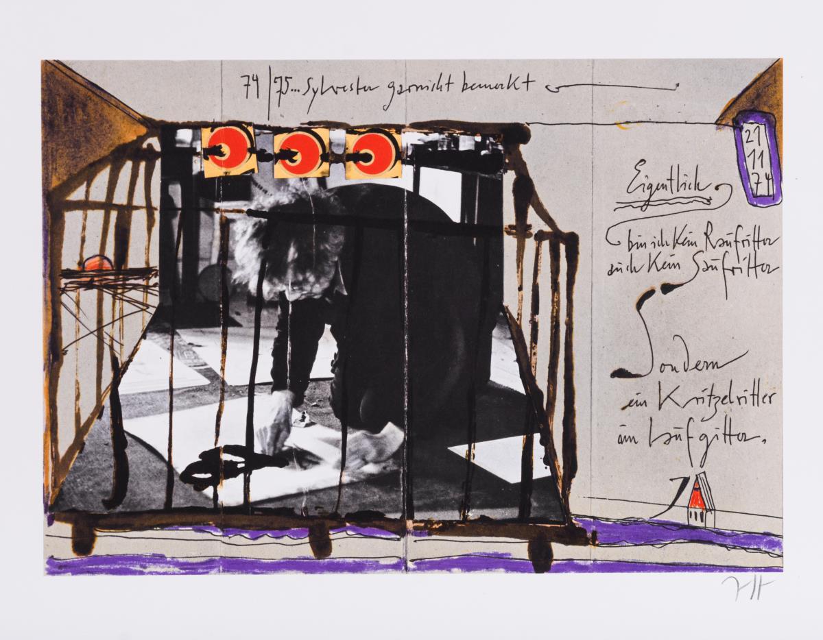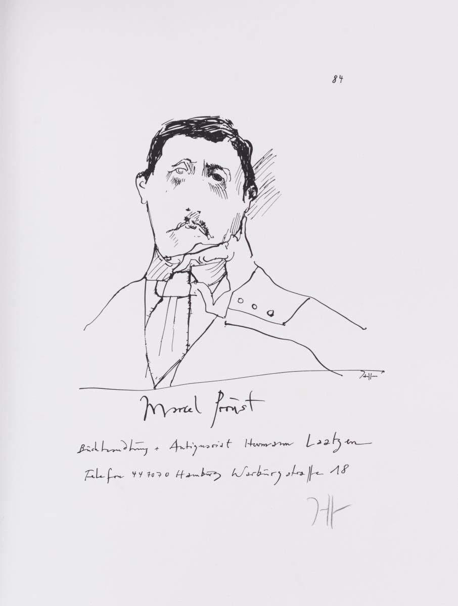 Galerie Denis Rene´ Hans Mayer: "Endi war hohl - All is pretty"; "74/75 Sylvester gar nicht bemerkt"; "Nichts trennt sich ganz oder disperata desordenado"; Buchhandlung + Antiquariat Hermann Laatzen "Marcel Proust"; Galerie Peerlings "H Janssen - Zeichnungen, Radierungen, Bücher"; "Horst Janssen - Die Kopie - Christians Hamburg"; Galerie Neumann: "H Janssen - Radierungen + Zeichnungen vom 30.11.79 - 31.1.80"; Thalia Theater: "Macbeth"; Isar Galleri 1+1: "Horst Janssen - Briefe an Mirjam" und "10 Jahre Galerie Peerlings - Ausstellung: Janssen Bücher" (im Stein monogrammiert). Teils mit kleinen Knicken.