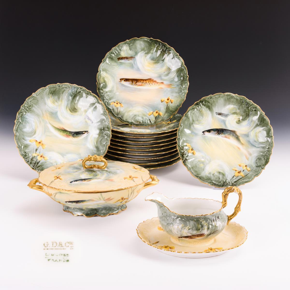 14 Teile eines Fischservice. Limoges.