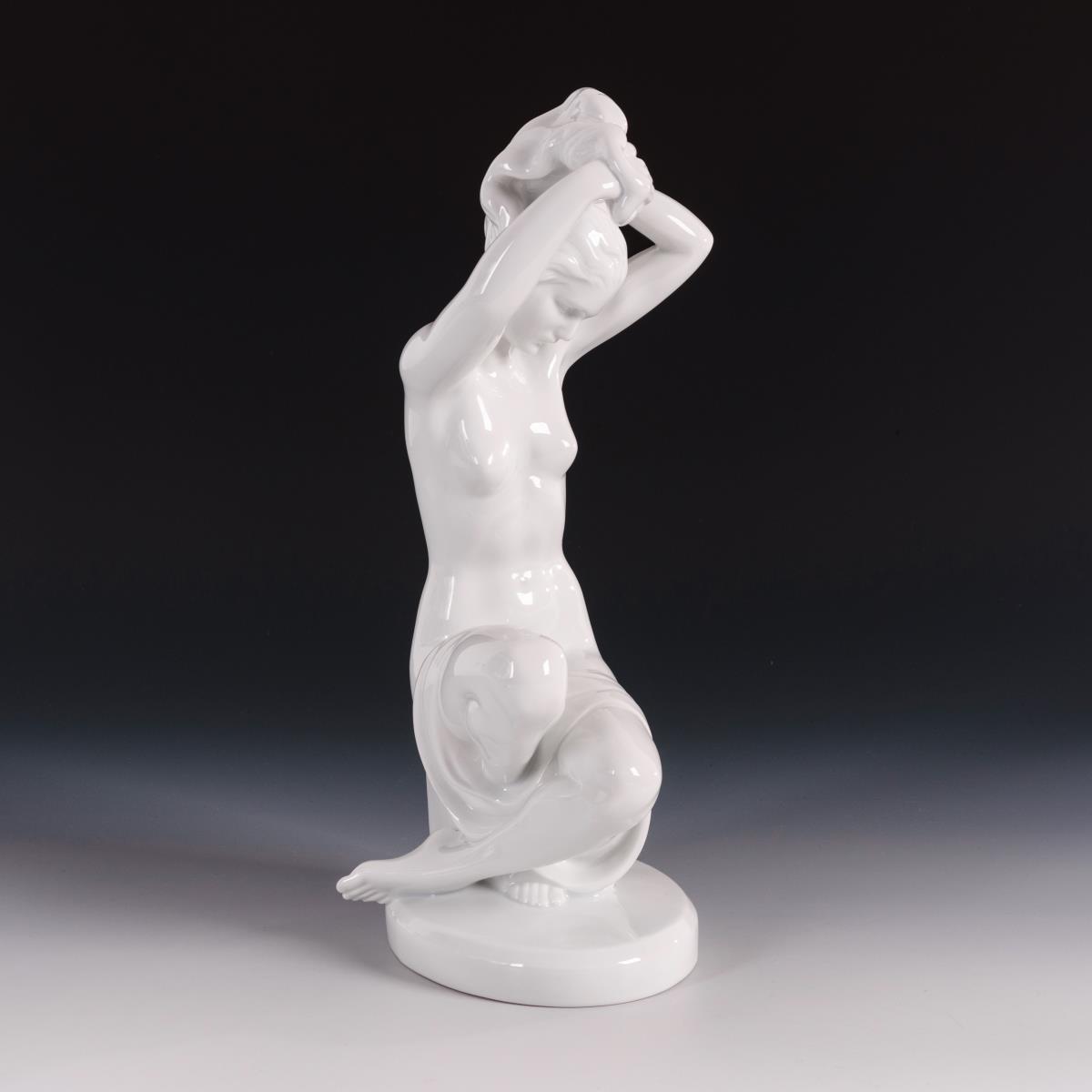 Frauenakt, sich die Haare frisierend.