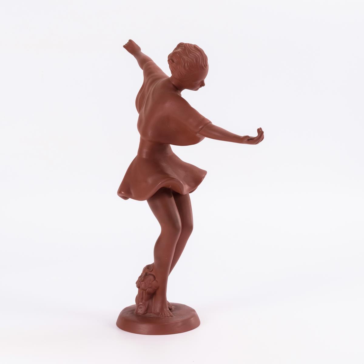 Tänzerin in Pose mit weit ausgestreckten Armen, auf Rundsockel.