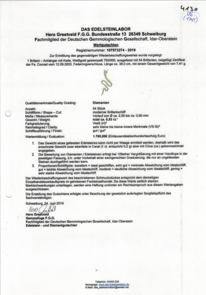 Wertermittlung laut Gutachten von 2019: 1.760,00 Euro.