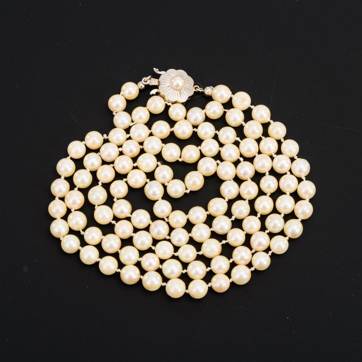 Weißgold 585 gestempelt. L 48 cm. Perlen Ø 7 mm. 48 g.