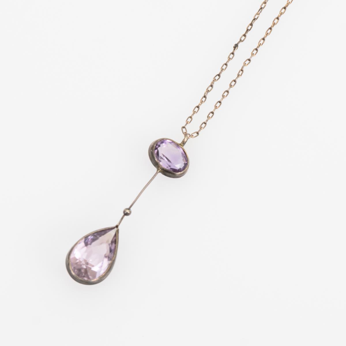Art-déco-Anhänger mit Amethysten an Kette.