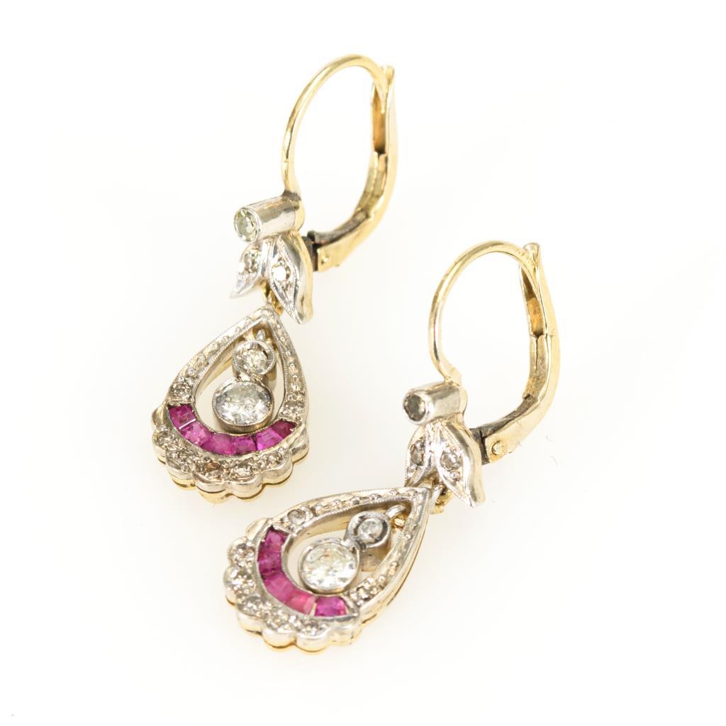 Art-Déco-Ohrhängerpaar mit Rubinen und Brillanten