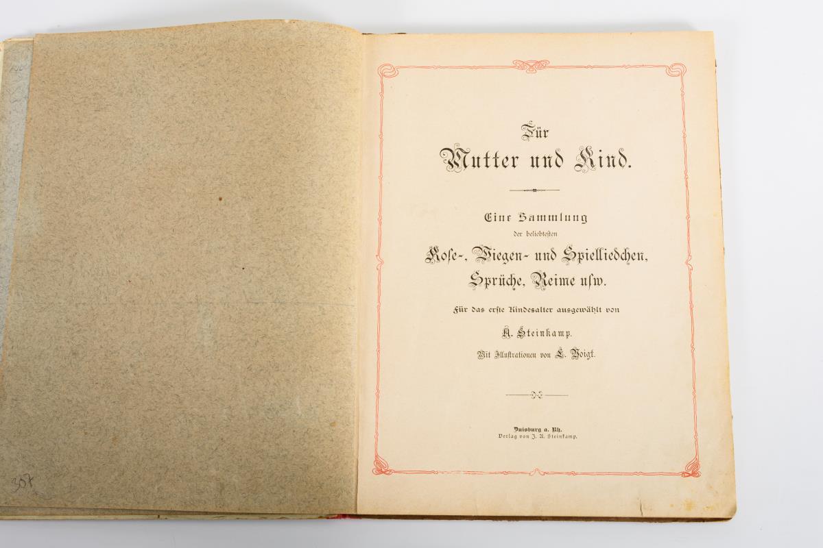 "Eine Sammlung der beliebtesten Kose-, Wiegen- und Spielliedchen, Sprüche und Reime usw.". Illustrator L. Voigt.