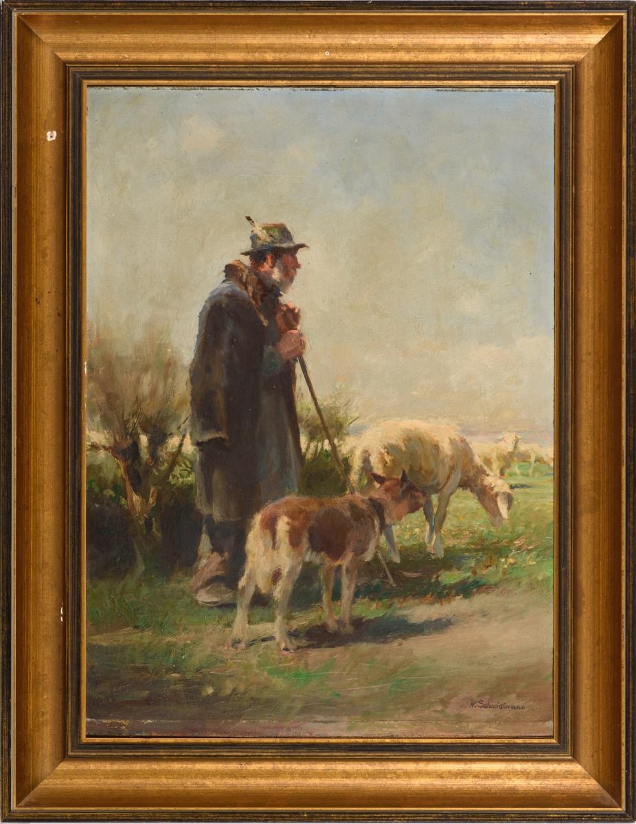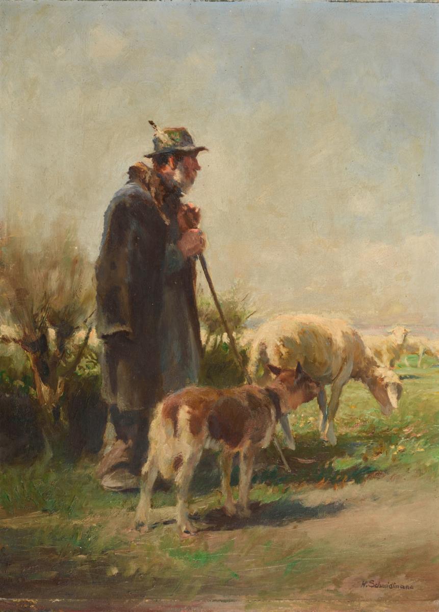 Hirte mit Schafherde