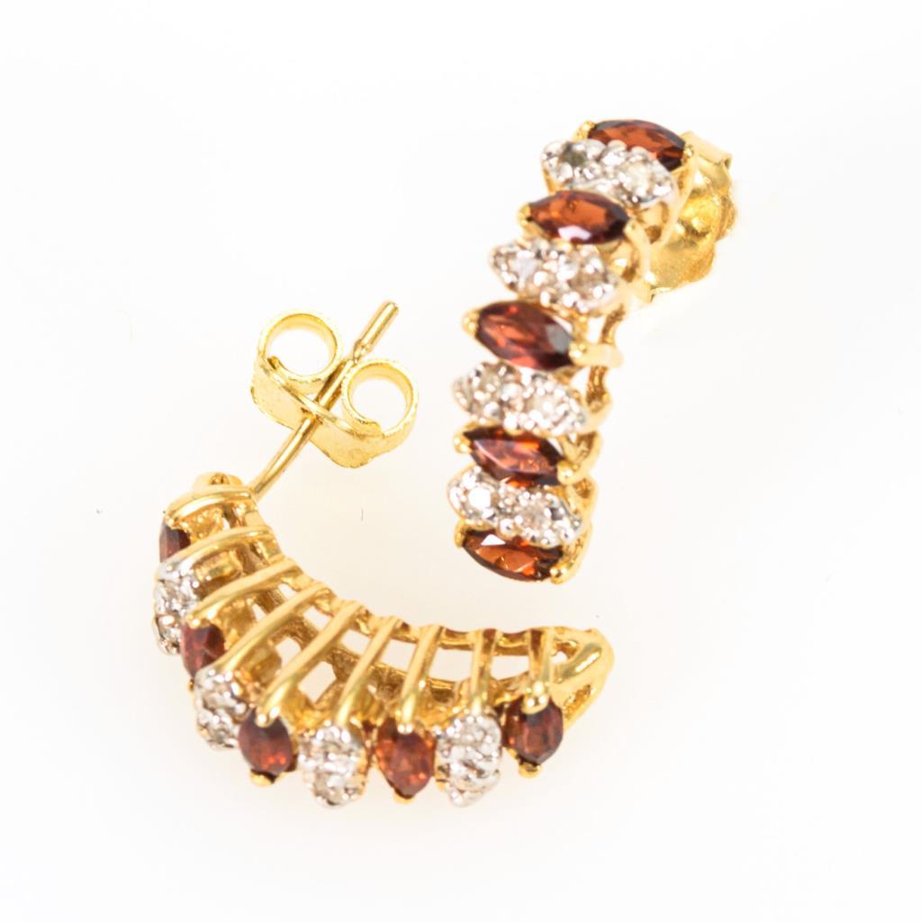 Bogenstegbrisur mit Granatnavetten und kleinen Brillanten. Steckmechanik.