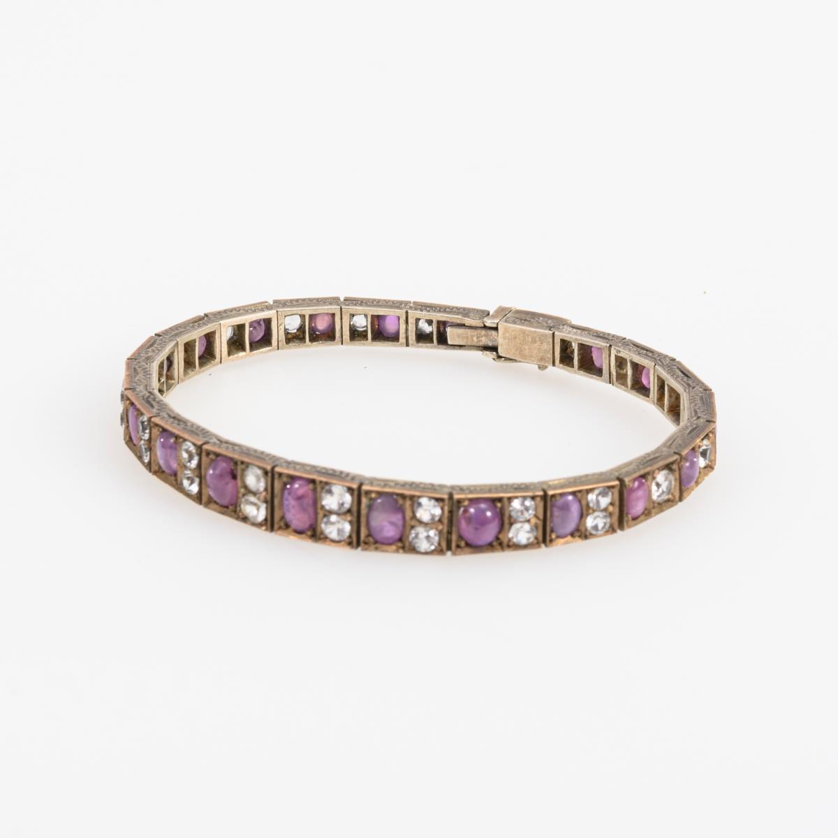 Art-déco-Armband mit farblosen und roséfarbenen Steinen.