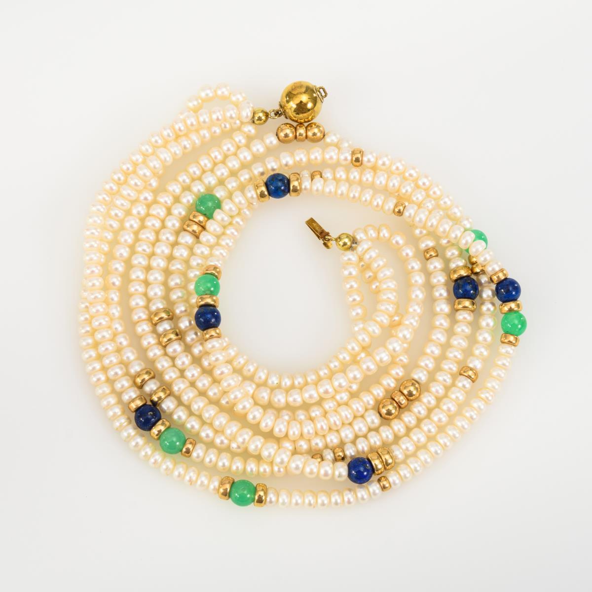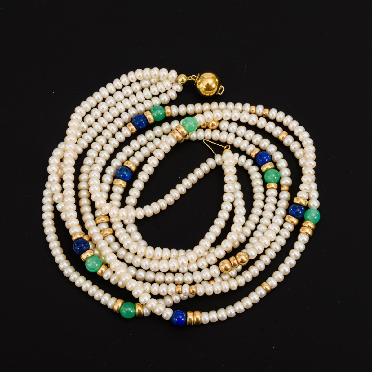 4-reihige Zuchtperlenkette mit Lapislazuli und Chrysopras?.