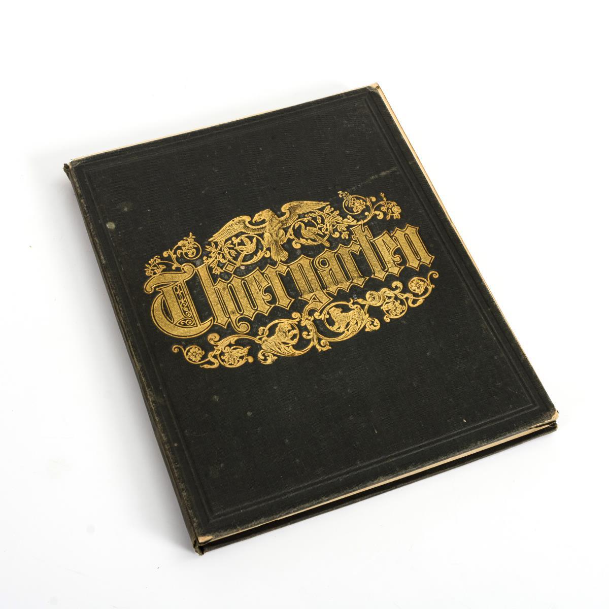 3. Auflage, 97 Textseiten und 16 ganzseitige Farblithographien. Goldgeprägter Leineneinband. Block und Einband lose, sonst altersgemäße gute Erhaltung. Block stabil.