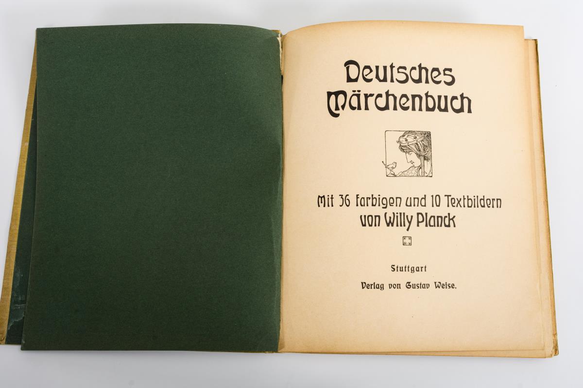 Franz Kamberg: "Ins Zauberland - Eine Sammlung von 40 der schönsten Märchen, Sagen und Schwänke ...", Verlag von Wilhelm Effenberger, Stuttgart und Leipzig, 3. durchgesehene Auflage. 112 Seiten. / "Das schönste Bilderbuch" - "Zucker Honig und Mandelkern Essen die Kinder alle gern. Doch sie sollen zu süßen Gaben Auch das schönste Kinderbuch haben". Union Deutsche Verlagsgesellschaft, Stuttgart, wohl vor 1900. 72 Seiten, Halbleineneinband, wenige Seiten lose, sonst gute Erhaltung. / "Deutsches Märchenbuch" mit Illustrationen von Willy Planck, Verlag Gustav Weise, Stuttgart, um 1910. Ohne Seitenzählung, mit ganzseitigen Farblithographien. Leineneinband mit stärkeren Gebrauchsspuren, Seiten lose.