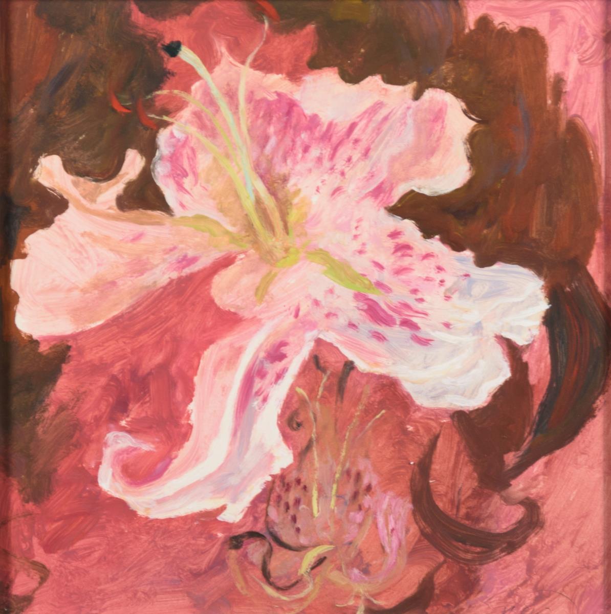 Darstellung einer großen Blüte in rötlichen Farben.
