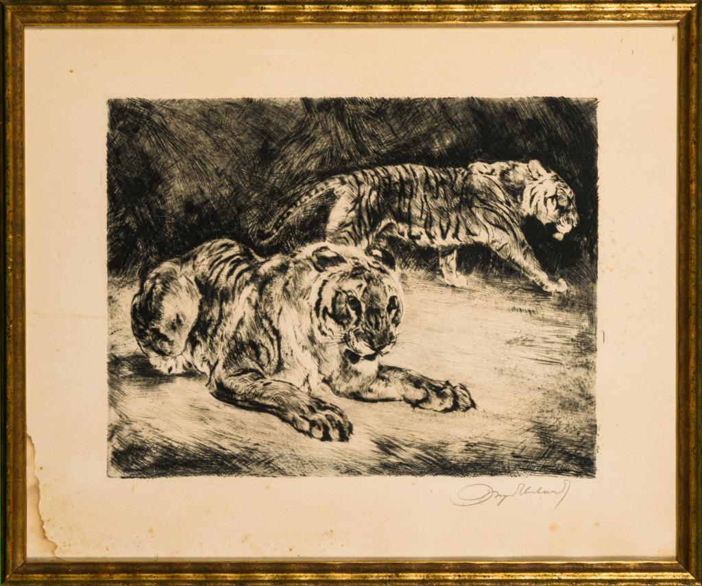 Darstellung von 2 Tigern. Etwas stockfleckig.