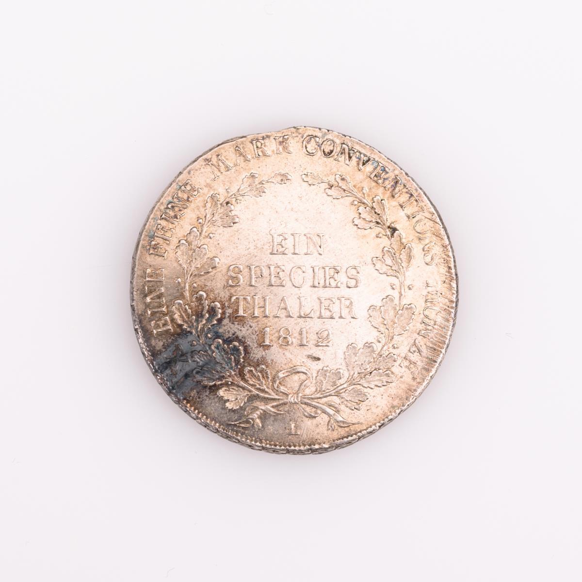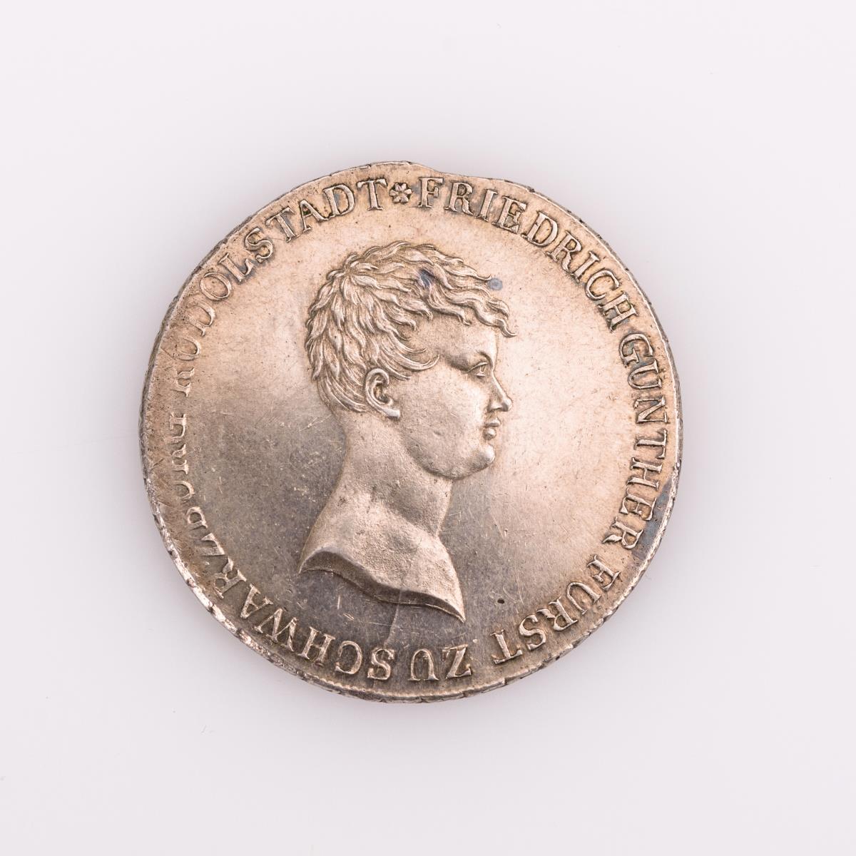 "Friedrich Günther Fürst zu Schwarzburg Rudolstadt", Speciesthaler, Conventions Münze. Laubrand. Zustand: sehr schön mit Spuren alter Anhängerfassung.
