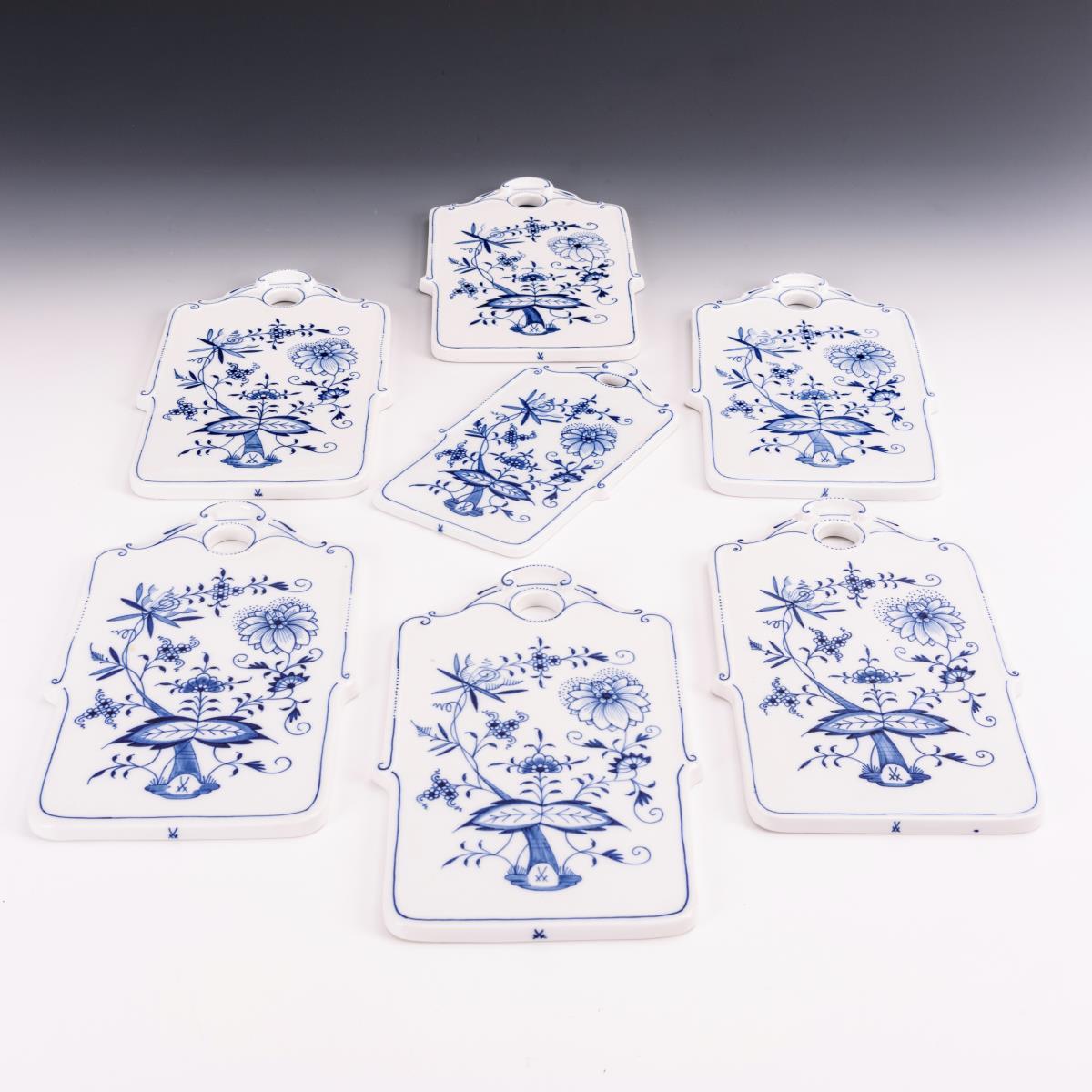 6 + 1 Zwiebelmuster-Brettchen. Meissen.