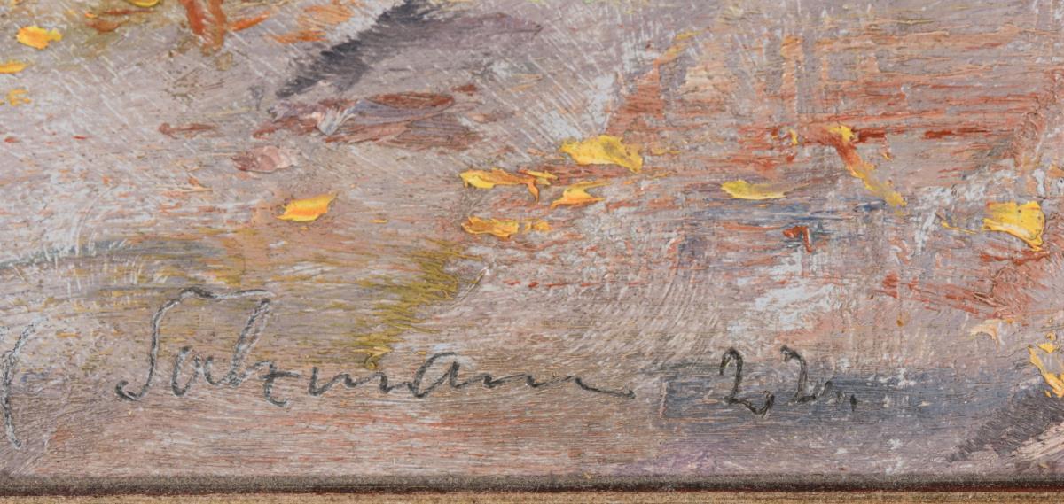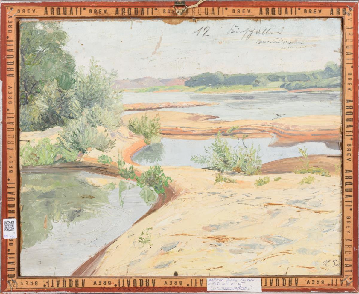 Öl/Malkarton. Links unten signiert, verso signierte Flusslandschaft. Datiert: (19)22.