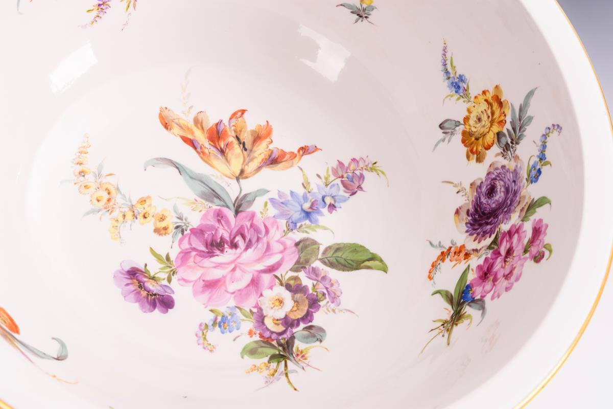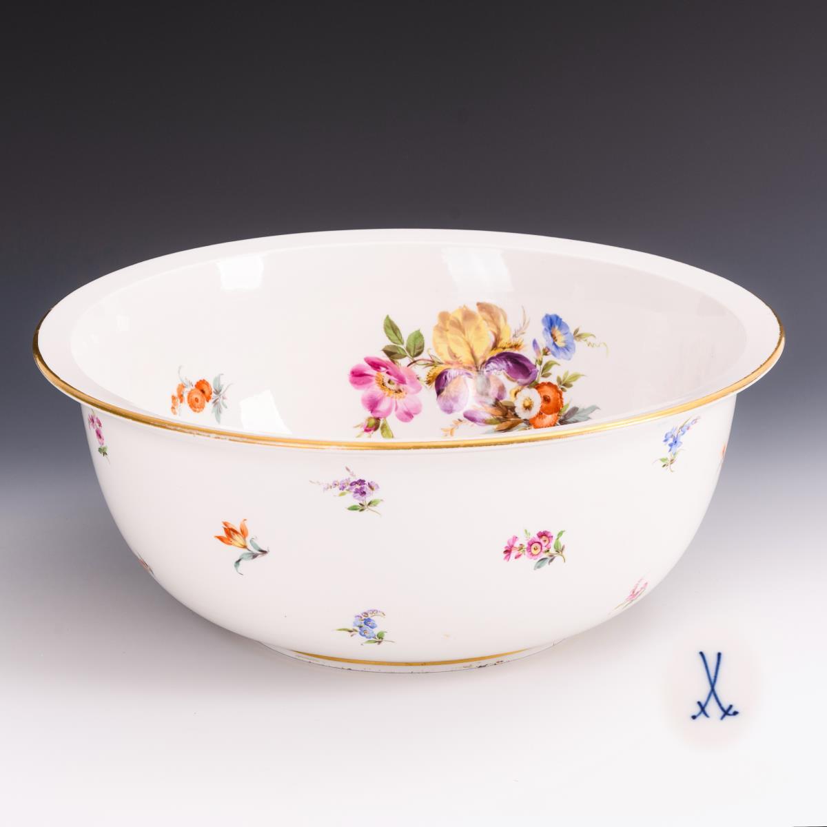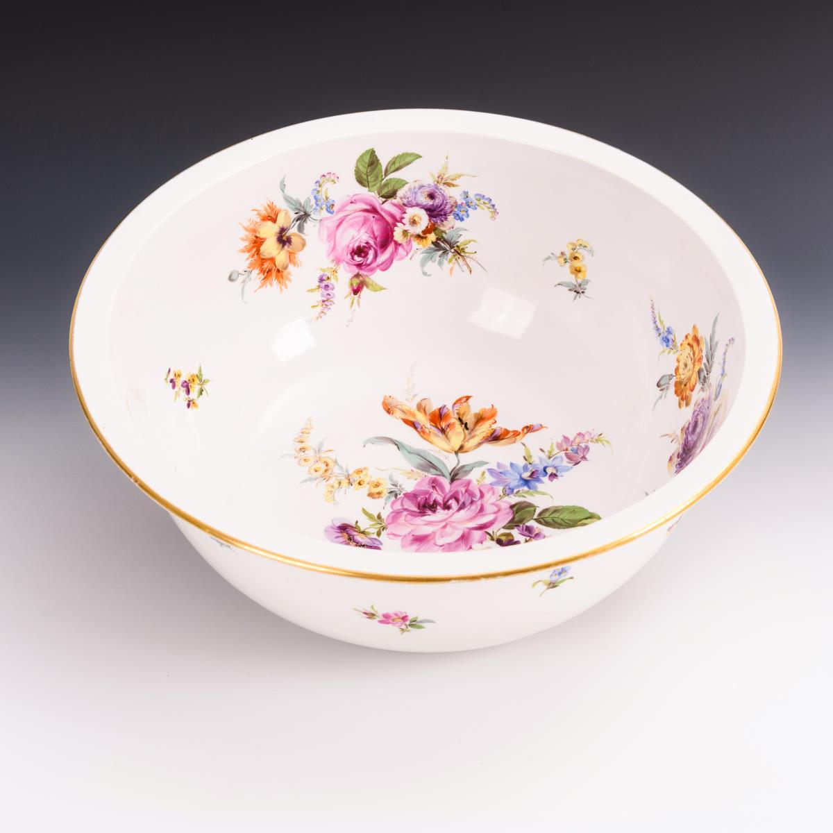 Außergewöhnlich große Waschschüssel mit Blumenmalerei. Meissen.