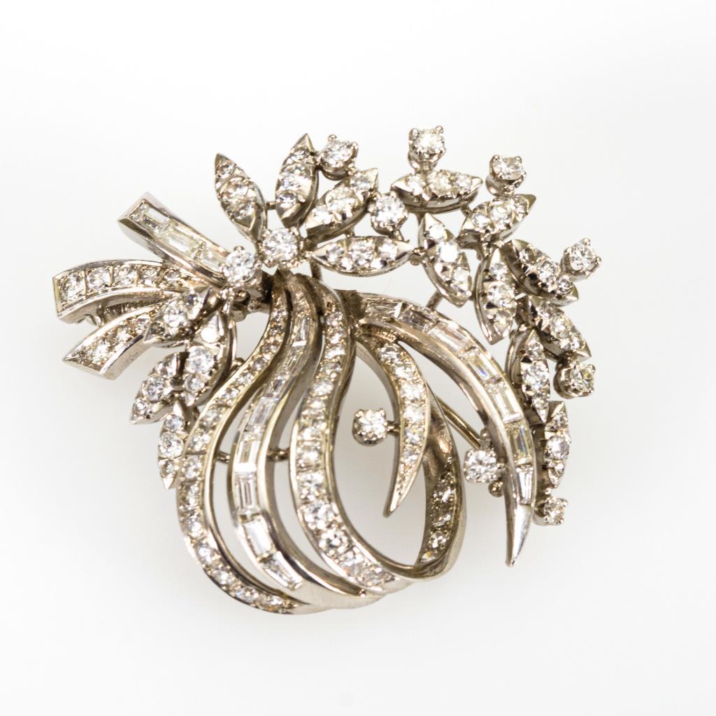 Hochwertige Platin-Brosche mit Brillanten und Diamanten