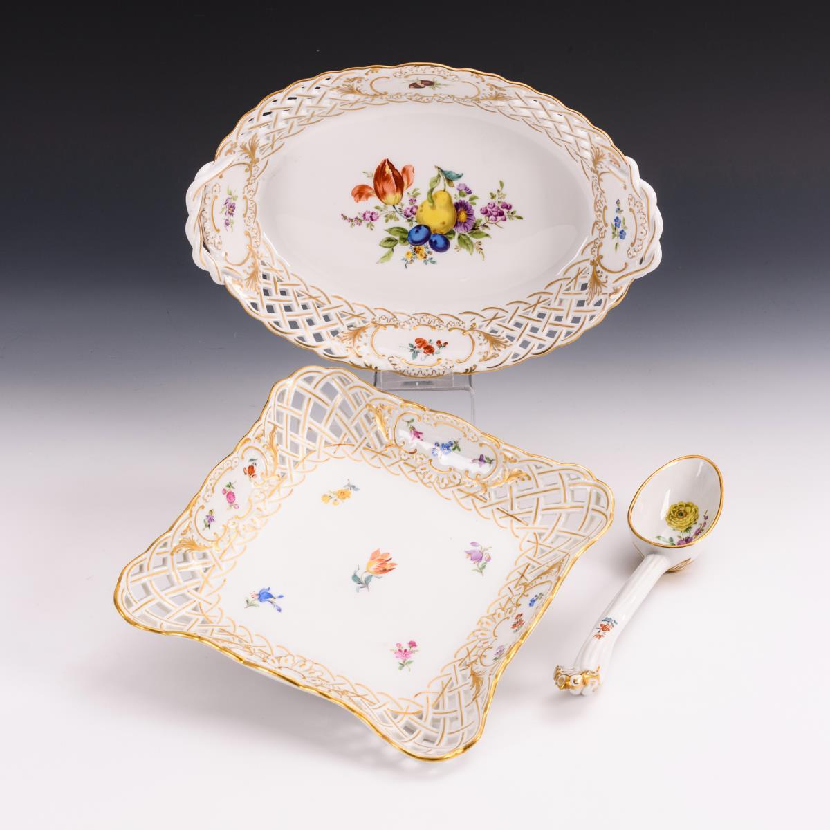 2 Durchbruchschalen und 1 Löffel. Meissen.
