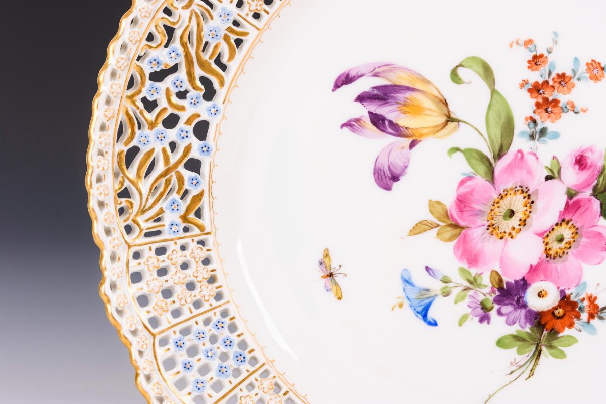 Durchbruchteller mit Blumenmalerei. Teichert.