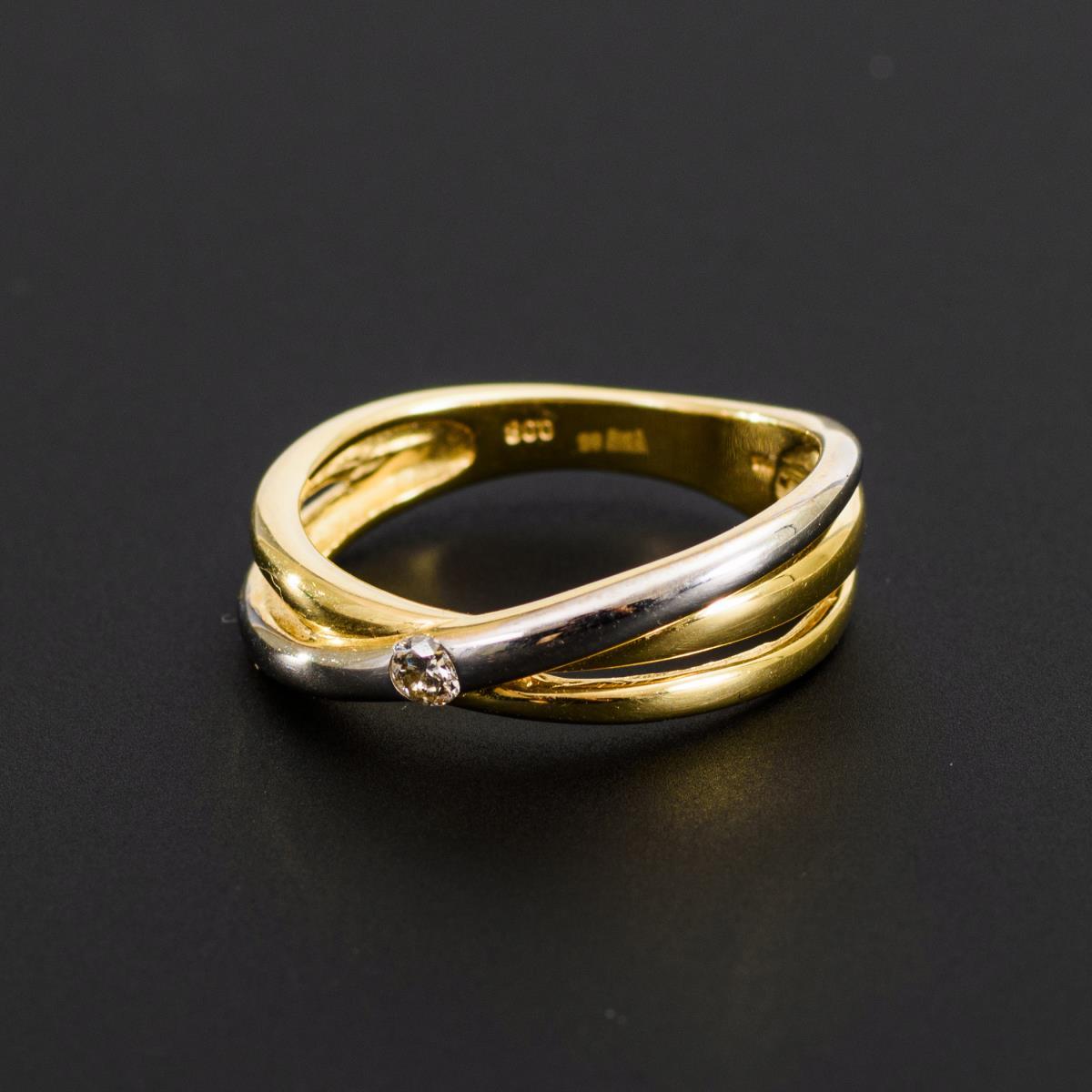 Gelbgold/Weißgold 585 gestempelt. Brillant 0,08 ct. Ringgröße 55.