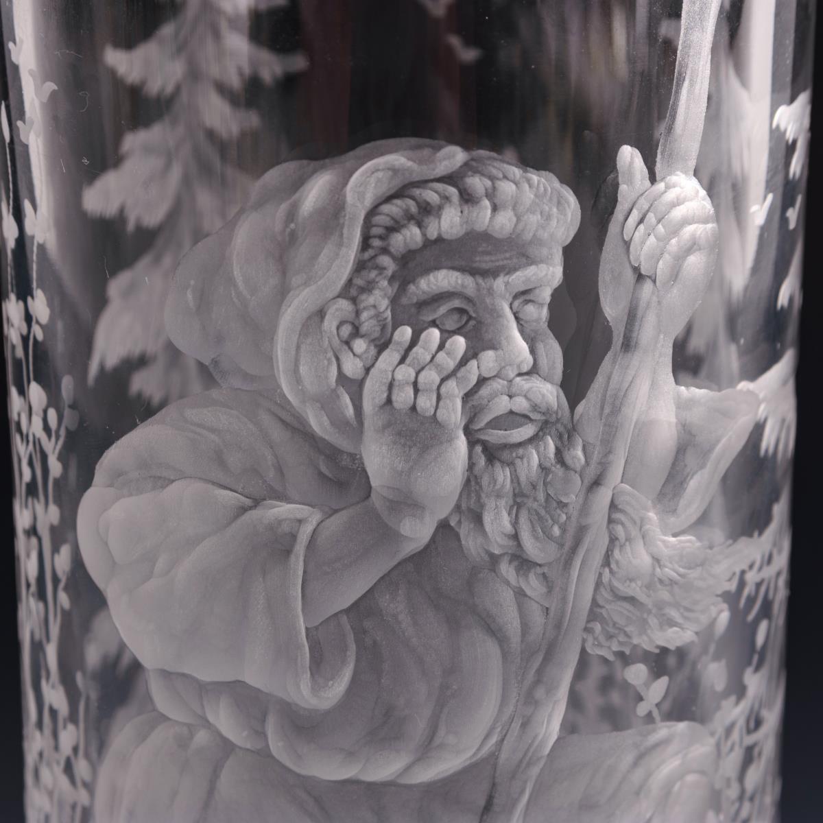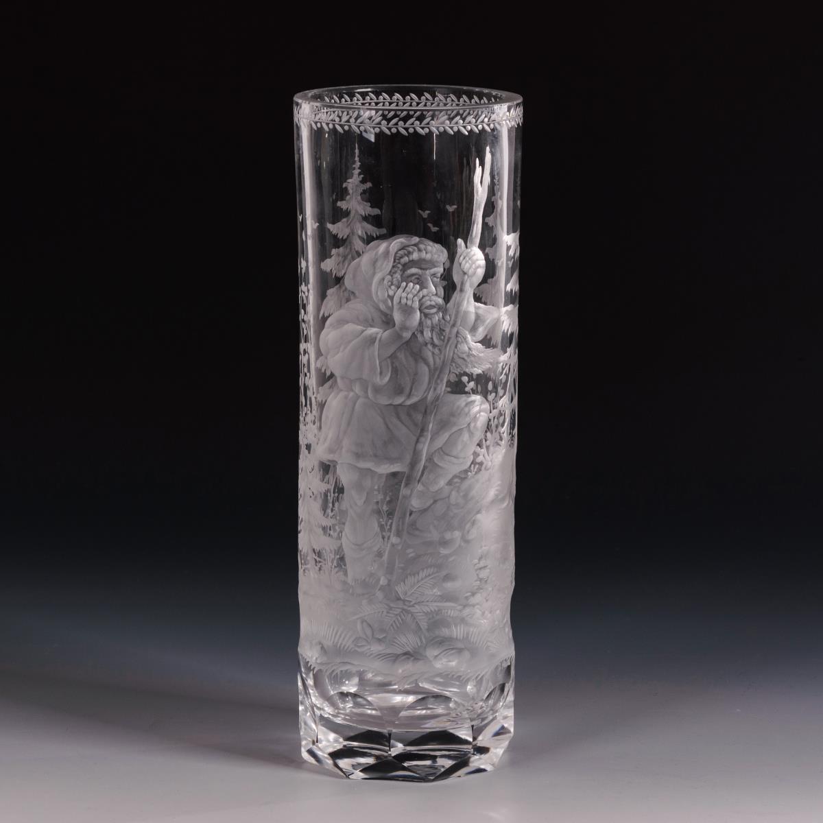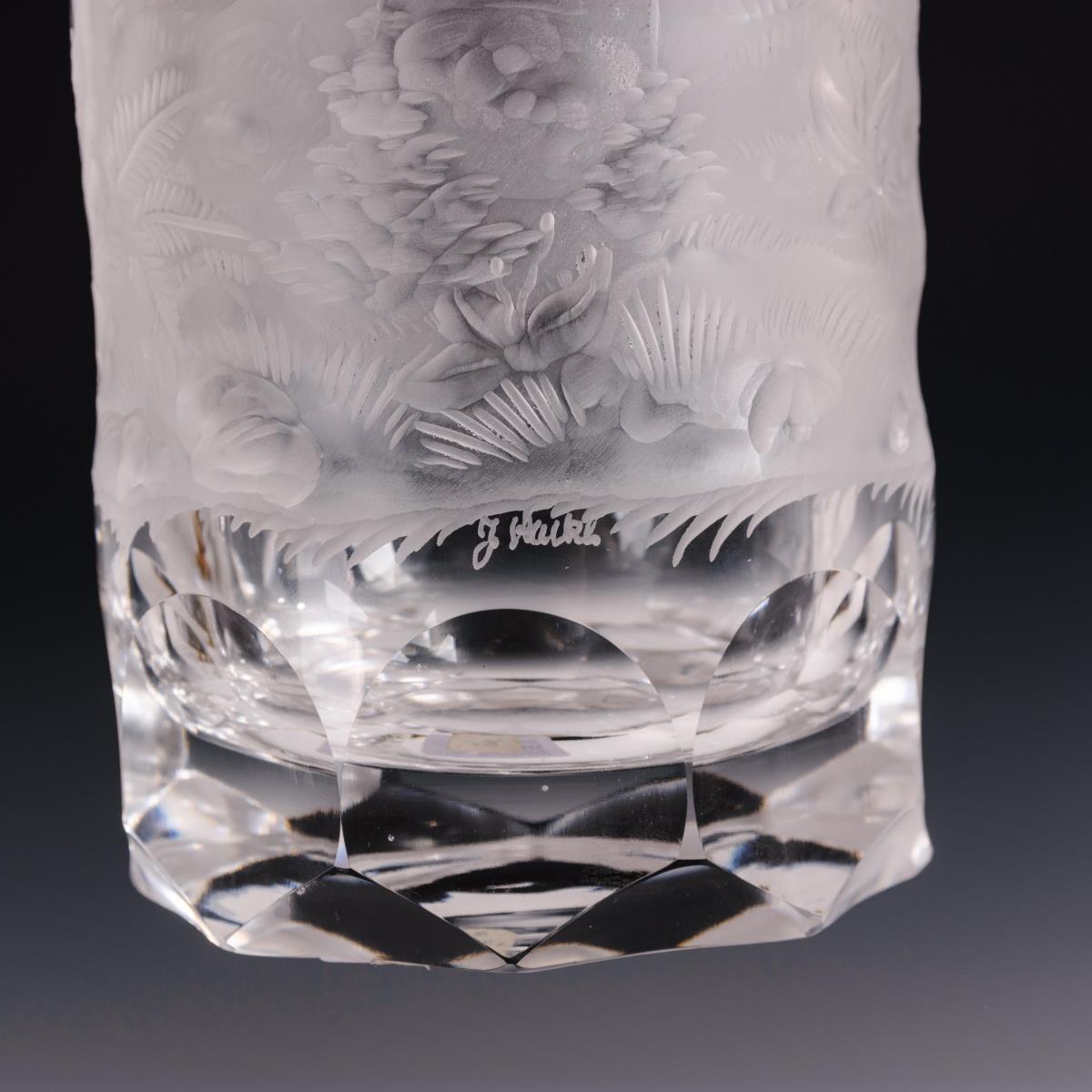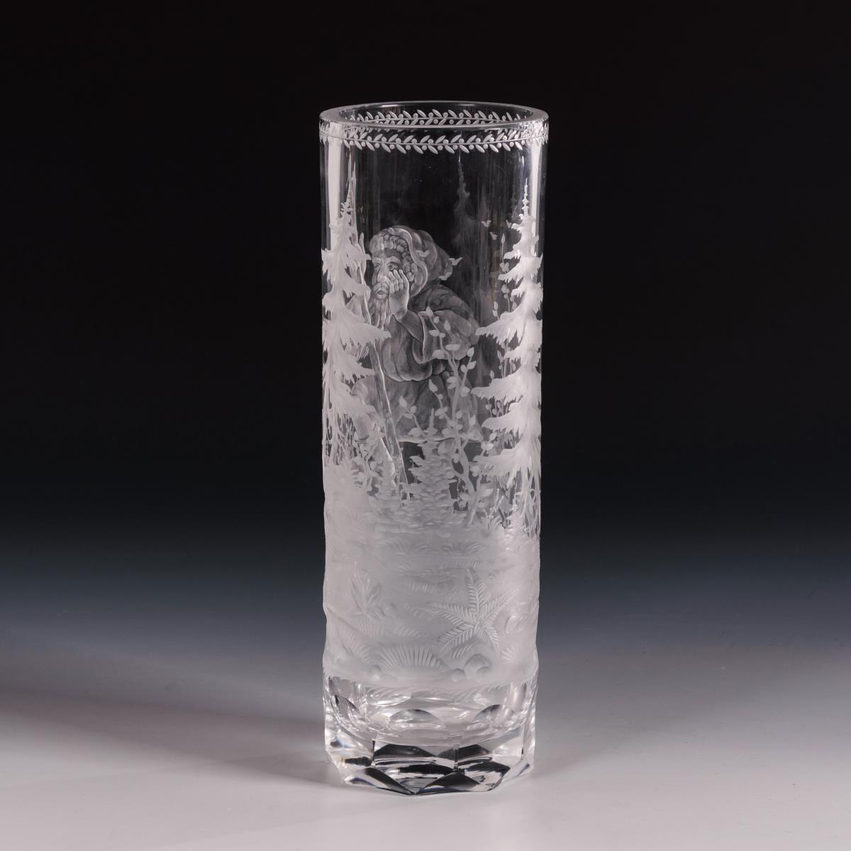 Farbloses Glas, Mattschnittdekor. H 26 cm.