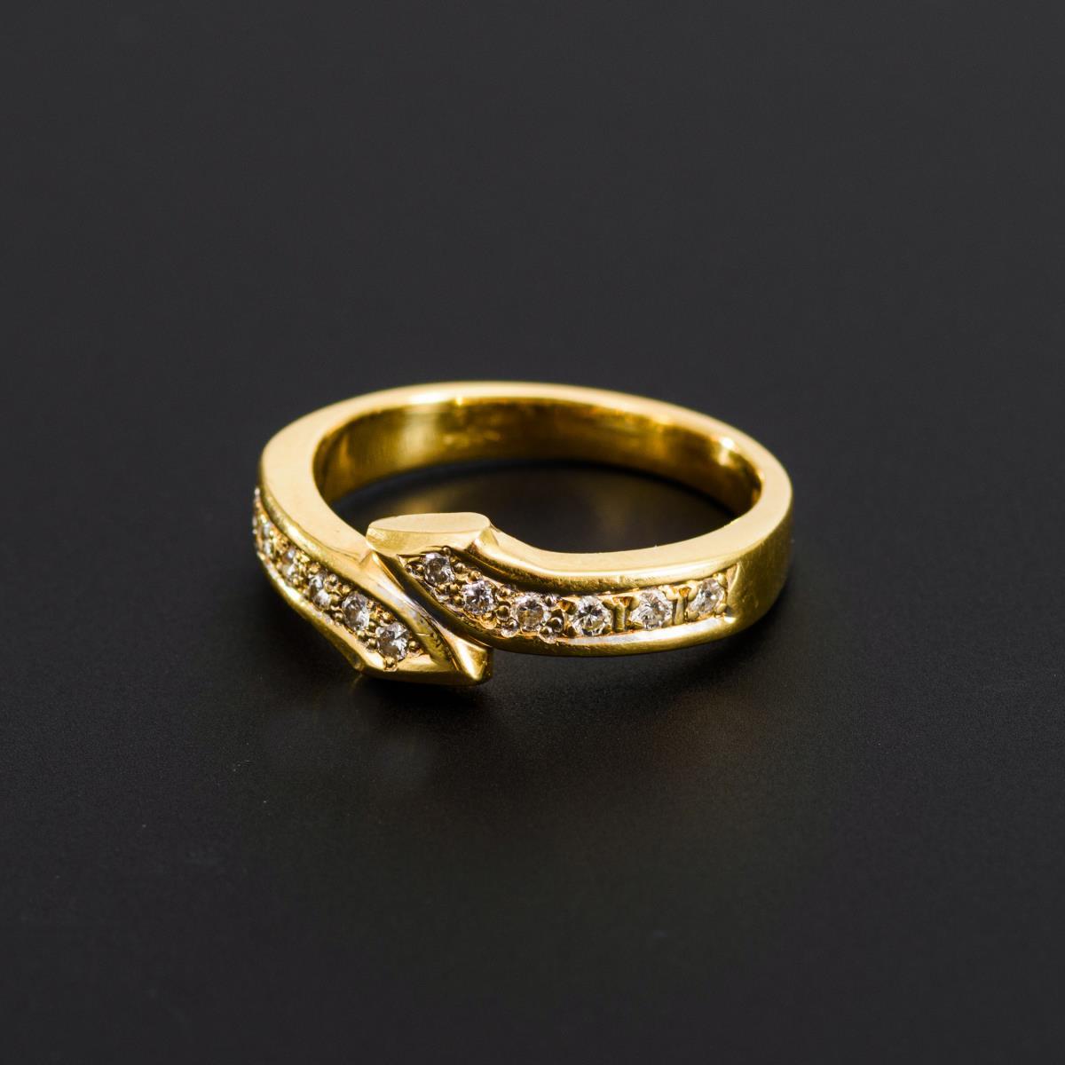Gelbgold 750 gestempelt. Brillanten zus. ca. 0,22 ct. Ringgröße 54. 5,7 g.