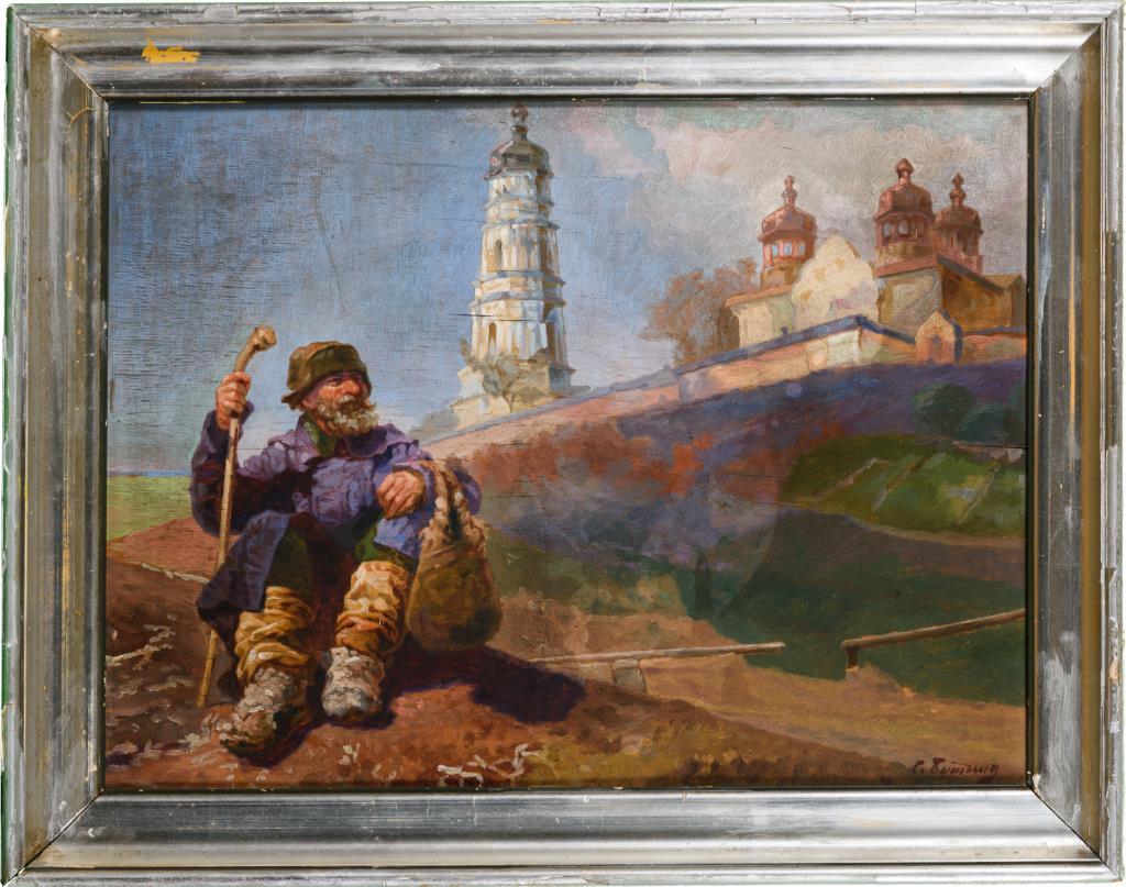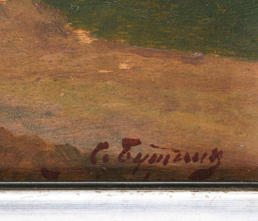 Öl/Holz.Rechts unten kyrillisch signiert.Datiert: (19)42 mit undeutlichem Zusatz.