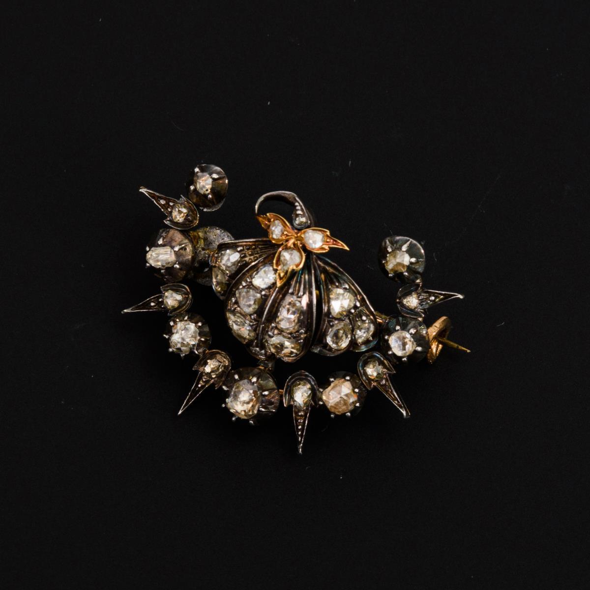Antike Brosche mit Altschliff-Diamanten 19. Jh.