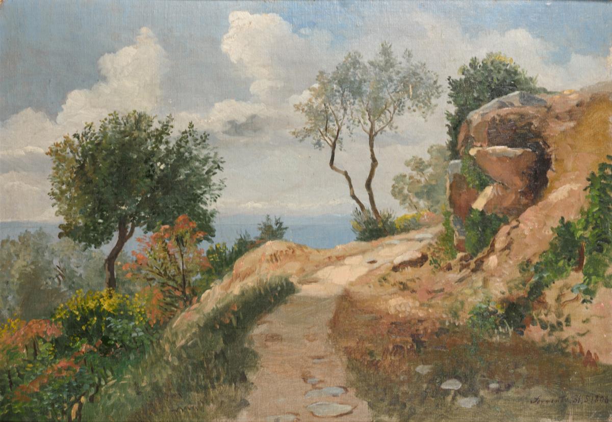 Öl/Leinwand/Karton. Italien. Rechts unten Ortsangabe. Datiert: 31.5.1898.