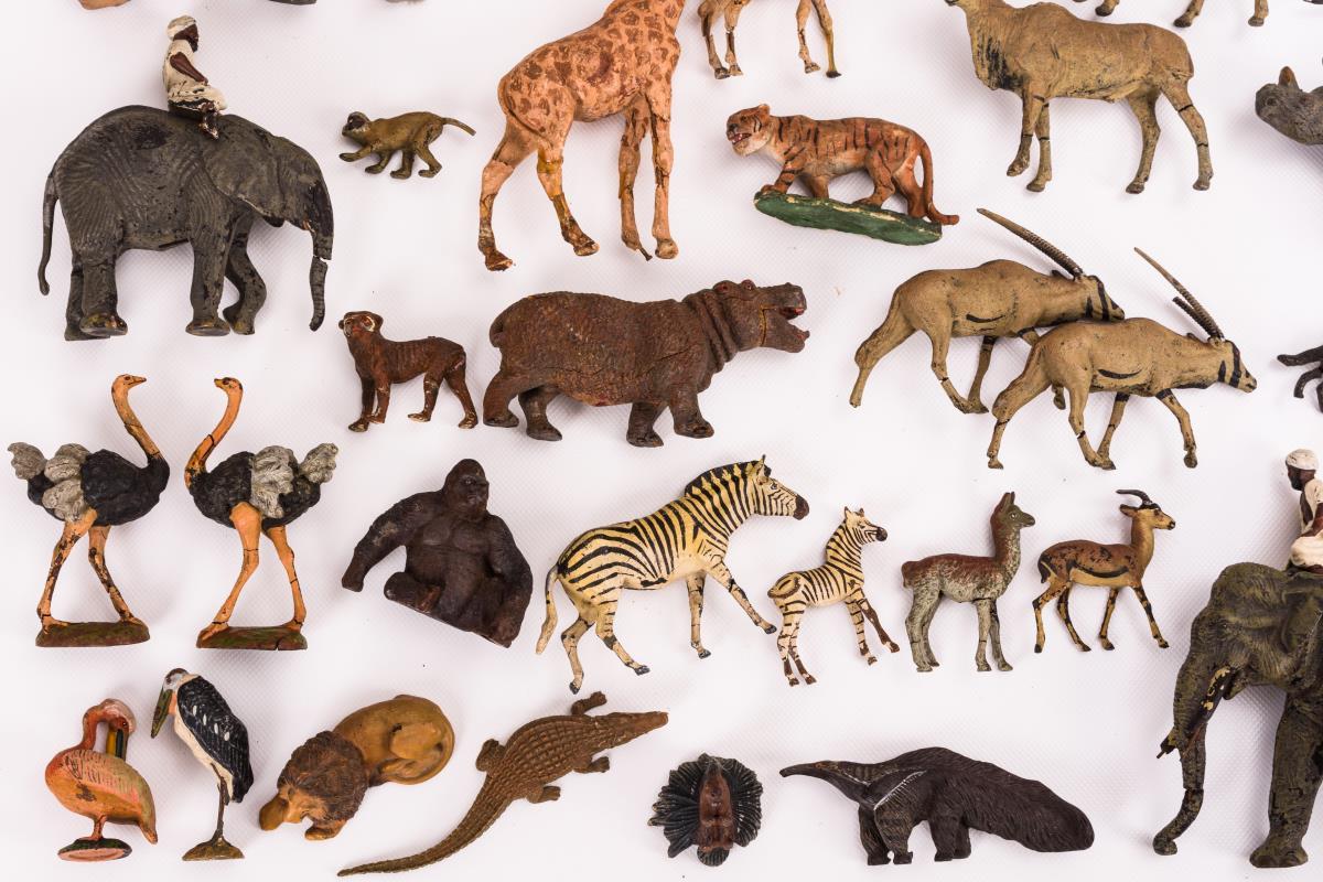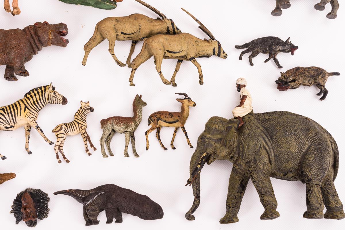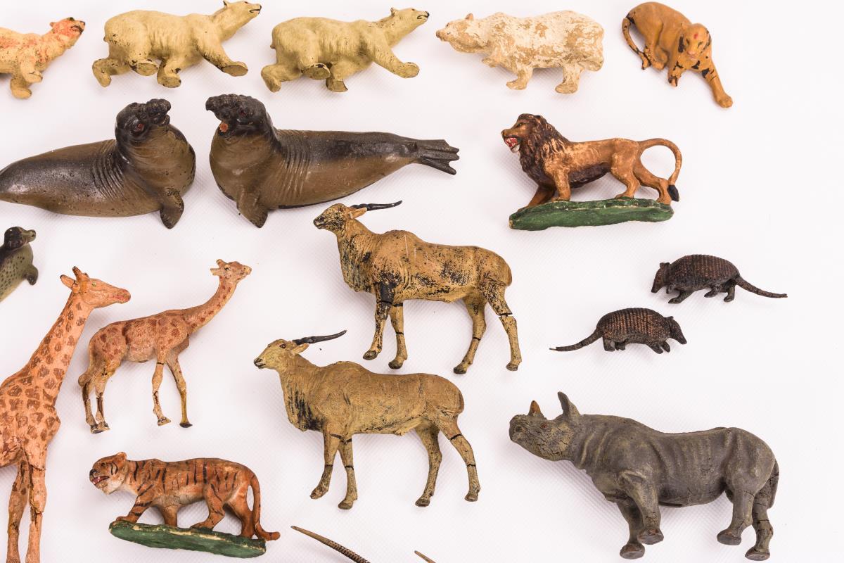 Ca. 44 außereuropäische Wildtiere, darunter Elefanten mit indischem Reiter, mehrere Eisbären, Robben etc. Mit Defekten und alten Reparaturen.