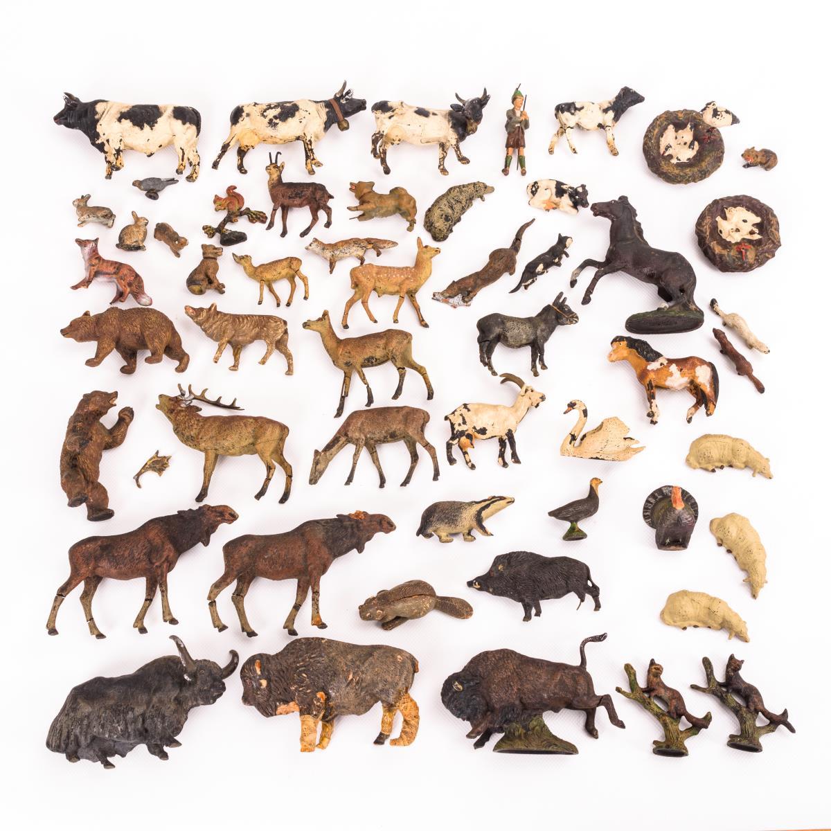 Ca. 50 Tiere und 1 Hirte. Darunter Haustiere, europäische Wildtiere sowie 2 seltene Storchennester. Mit Defekten und alten Reparaturen.
