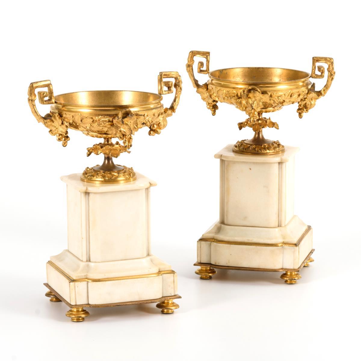Paar Beisteller mit Aufsatzschalen.