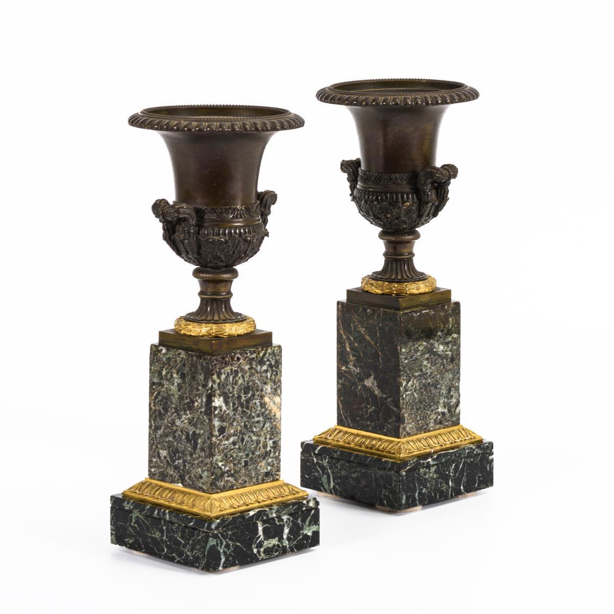 Bronze schwarzbraun patiniert bzw. vergoldet, dunkelgrüner Marmor. H 37 cm.