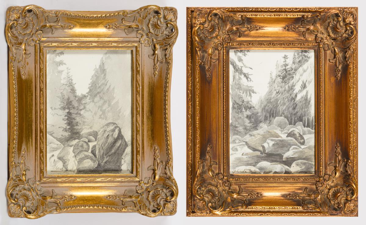 Je 18 x 13 cm. Gerahmt & hinter Glas: 22 x 27 cm und 23 x 28 cm.