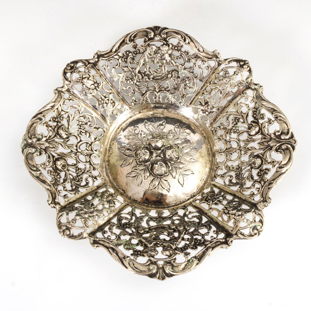 Reich reliefiertes Schälchen mit Putten und Rosen.